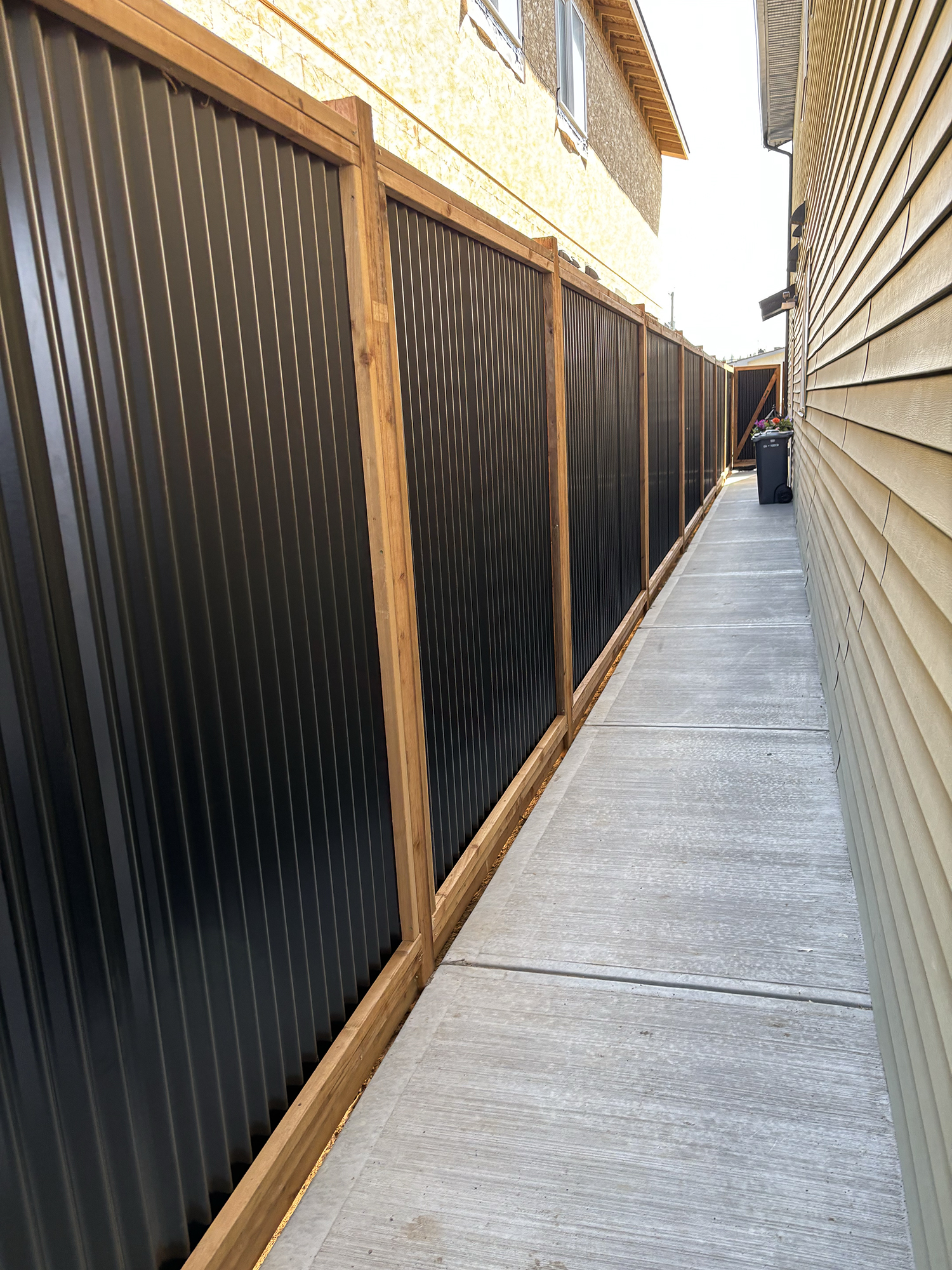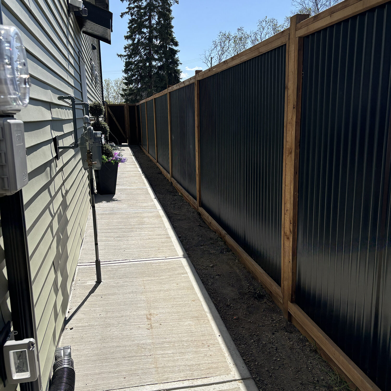 Modern industrial styling meets durability with our metal and wood combination fencing. Perfect for contemporary homes and commercial properties.